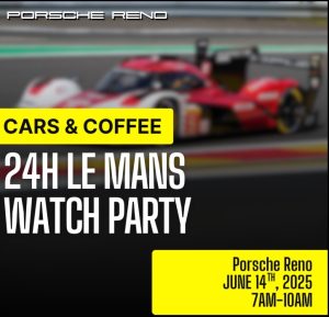 SNR has joined again with our partners at Porsche Reno for our Second Annual 24hr of Le Mans Watch Party on June 13th from 7-10 am!  Our event last year was such a success we’re doubling down this year with Porsche Reno for even more fun! This event is free to attend so join us for the start of Le Mans at 7am with coffee.  Early morning breakfast and coffee are included so you can just roll out of bed and head on over for the start of the race!