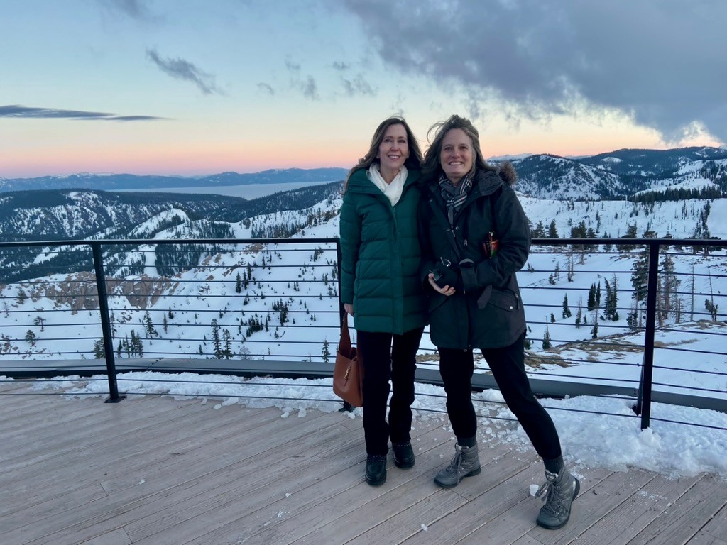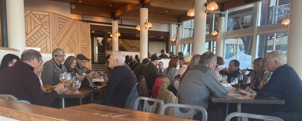 Over Presidents’ Day weekend, 35 members of the Sierra Nevada Region attended Sunset Happy Hour at Palisades Tahoe. Our adventure began with an eight-minute scenic ride aboard the aerial tram to High Camp, ascending from 6,200′ to 8,200’ over majestic granite rock formations while taking in the magnificence of the Sierra Nevada mountains. Upon reaching the summit, we gathered inside the Terrace Restaurant for tasty appetizers and beverages, as well as live music. Views of Lake Tahoe and our snowcapped peaks were nothing short of spectacular! Once the sun went down, we all made our way back down the mountain, just ahead of what was predicted to be a powerful winter storm.